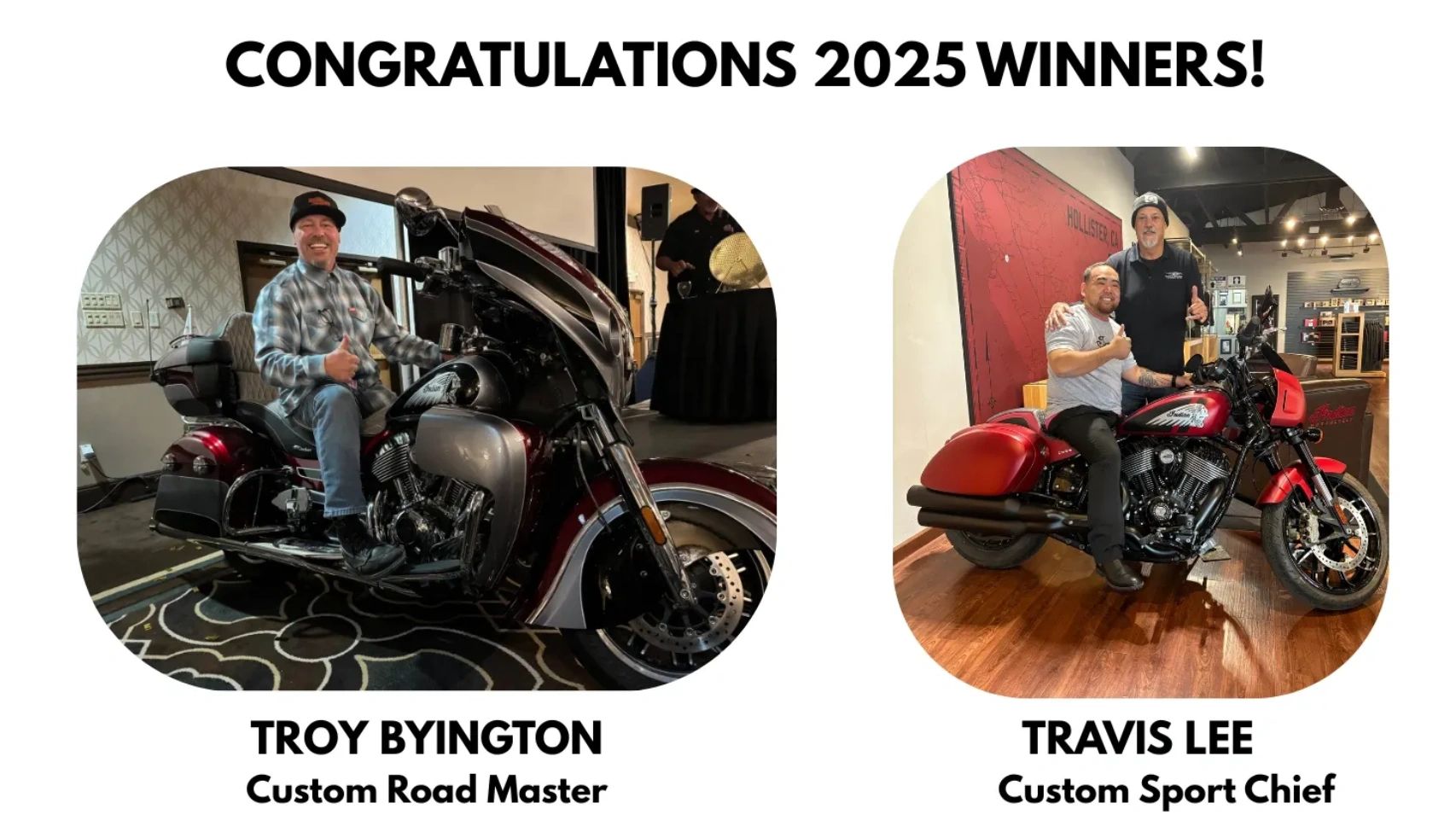 John Saguto on his new Custom Indian Motorcycle Scout Glide won at the